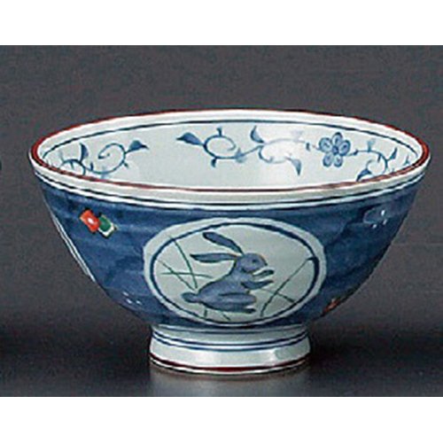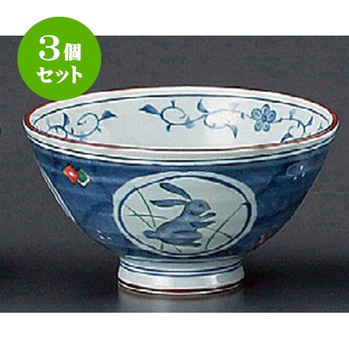원본상품명: 3個セット 飯碗(磁器) 古染?外深口丸紋ウサギ大平 [124 x 68mm] 和食器 料亭 旅館 ?食店 業務用