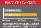海外仕様のFMラジオにも対応した周波数(76MHz~108MHz)で送信できるFMワイドバンド対応です。
