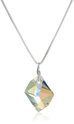Sterling silver pendant necklace featuring irregular-shape Swarovski Elements faceted Crystal and wire-wrapped bail.