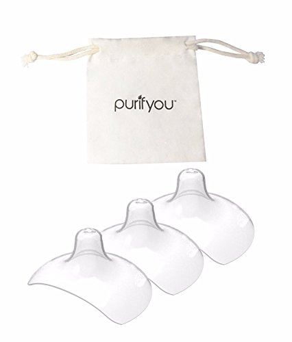 purifyou Premium Nipple Shield, Set of 3 with Soft Cotton Reusable Drawstring Bag -- Non-Toxic, BPA and BPS Free