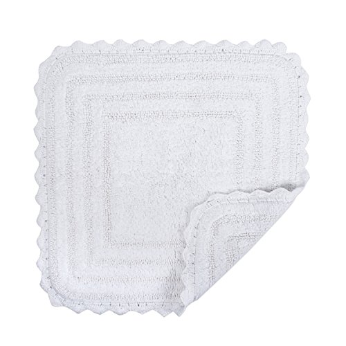 DII Ultra Soft Spa Cotton Crotchet Sqaure Bath Mat Place in Front of Shower, Vanity, Bath Tub, Sink, and Toilet, 28" - White