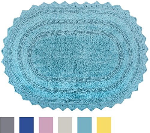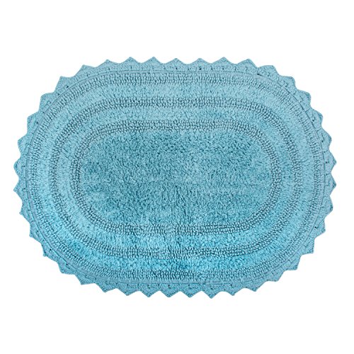 DII Ultra Soft Spa Cotton Crotchet Oval Bath Mat Place in Front of Shower, Vanity, Bath Tub, Sink, and Toilet, 17 x 24" - Cameo Blue