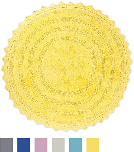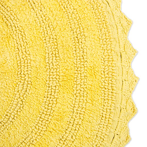 DII Ultra Soft Spa Cotton Crotchet Round Bath Mat Place in Front of Shower, Vanity, Bath Tub, Sink, and Toilet, 28" - Yellow