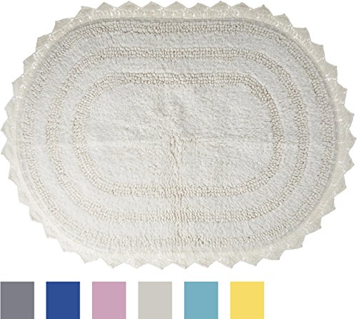 DII Ultra Soft Spa Cotton Crotchet Oval Bath Mat Place in Front of Shower, Vanity, Bath Tub, Sink, and Toilet, 17 x 24" - White