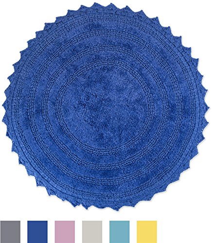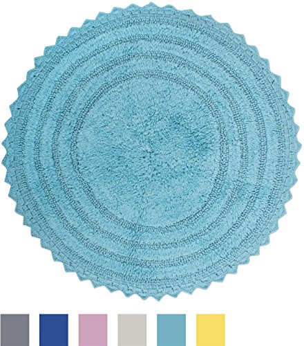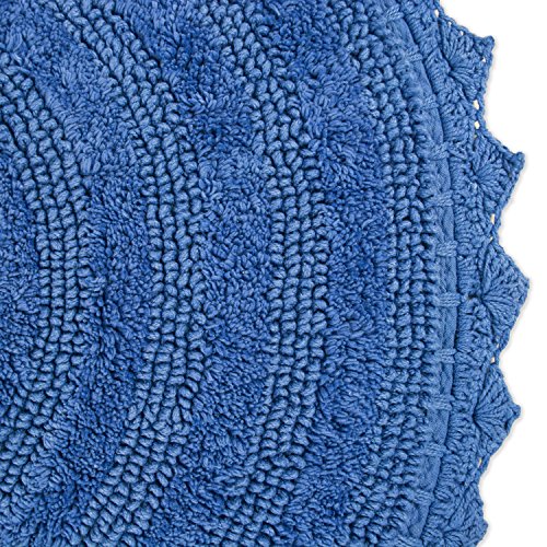 DII Ultra Soft Spa Cotton Crotchet Round Bath Mat Place in Front of Shower, Vanity, Bath Tub, Sink, and Toilet, 28" - Blueberry
