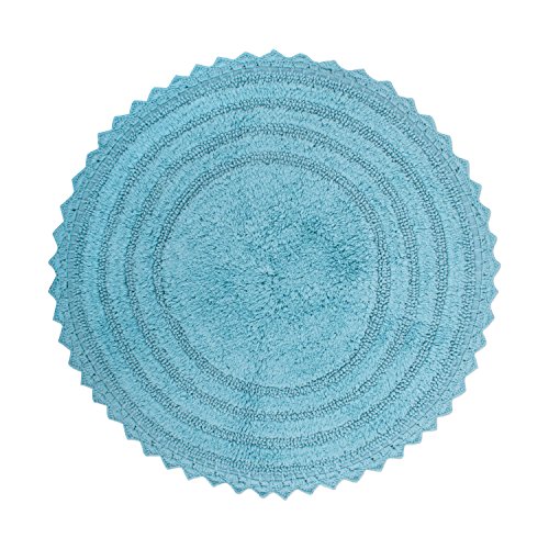 DII Ultra Soft Spa Cotton Crotchet Round Bath Mat Place in Front of Shower, Vanity, Bath Tub, Sink, and Toilet, 28" - Cameo Blue