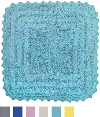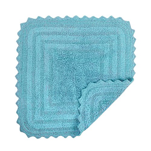 DII Ultra Soft Spa Cotton Crotchet Sqaure Bath Mat Place in Front of Shower, Vanity, Bath Tub, Sink, and Toilet, 28" - Cameo Blue