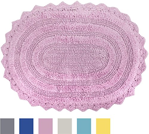 DII Ultra Soft Spa Cotton Crotchet Oval Bath Mat Place in Front of Shower, Vanity, Bath Tub, Sink, and Toilet, 17 x 24" - Mauve