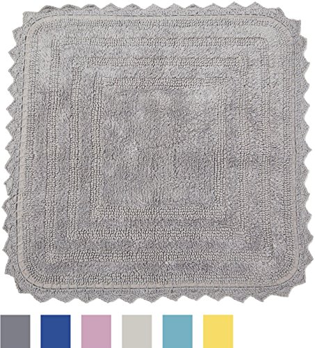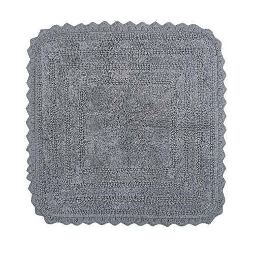 DII Ultra Soft Spa Cotton Crotchet Sqaure Bath Mat Place in Front of Shower, Vanity, Bath Tub, Sink, and Toilet, 28" - Grey