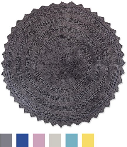 DII Ultra Soft Spa Cotton Crotchet Round Bath Mat Place in Front of Shower, Vanity, Bath Tub, Sink, and Toilet, 28" - Gray