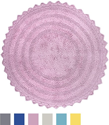 DII Ultra Soft Spa Cotton Crotchet Round Bath Mat Place in Front of Shower, Vanity, Bath Tub, Sink, and Toilet, 28" - Mauve
