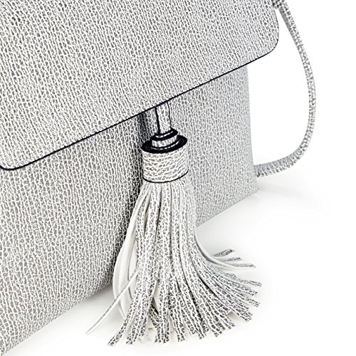 Product Description Wear this versatile bag as a clutch or over the shoulder with its convertible crossbody strap. An oversized tassel gives it sophisticated appeal. Material: Faux Leather Dimensions: 8"H x 11.5W x 1"D Strap Drop: 23" 0