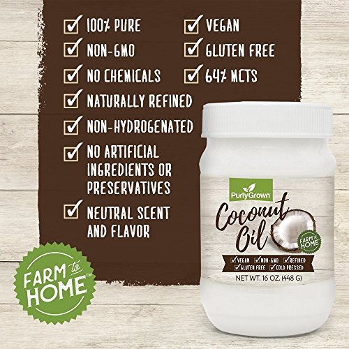 Purly Grown Organic Cold Pressed Refined Coconut Oil, 16 oz (Refined & Extra Virgin available): Coconut Oils For Healthy Cooking, Beauty, Skin Care & Hair Care