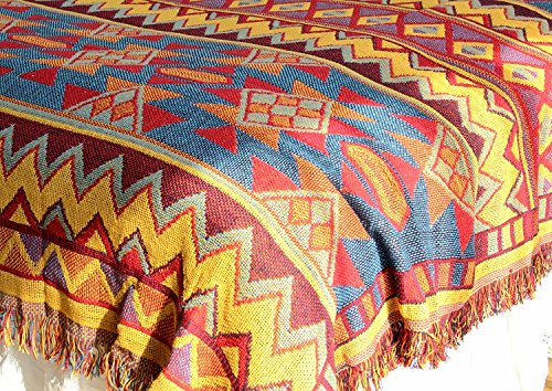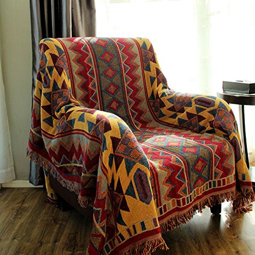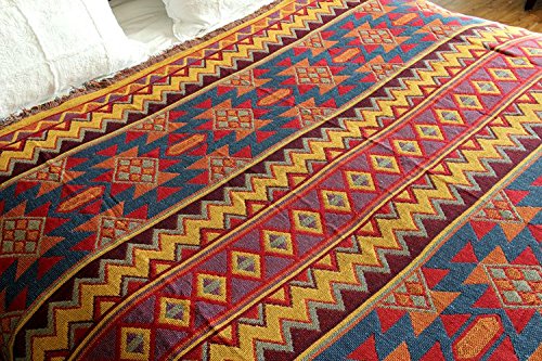 LELVA Bohemian Geometric Patterns Woven Throw Blanket Reversible Bedspreads Boho Bedroom Decor Beach Blanket (51 X 70 inch)