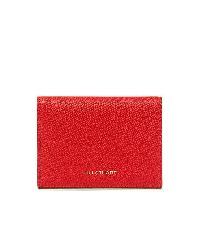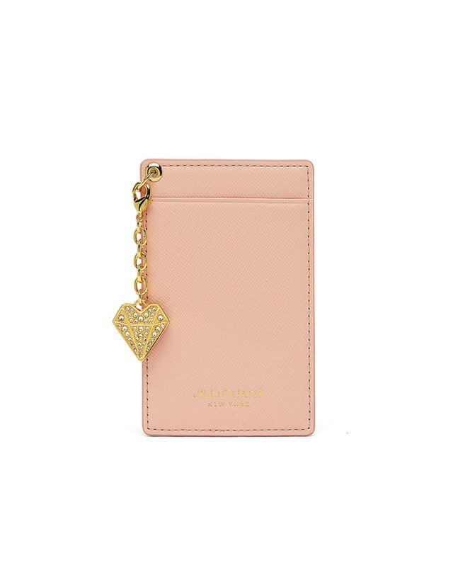 내부 베이비 핑크 배색으로 여성스럽고, 심플한 외관을 보여주며, 하단의 로고와 골드 바 장식으로 포인트를 준 2단 반지갑입니다.