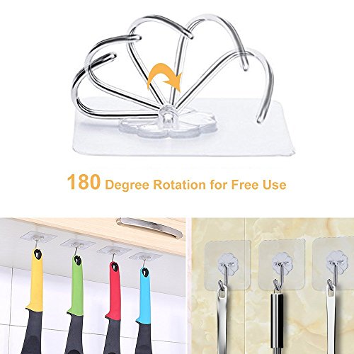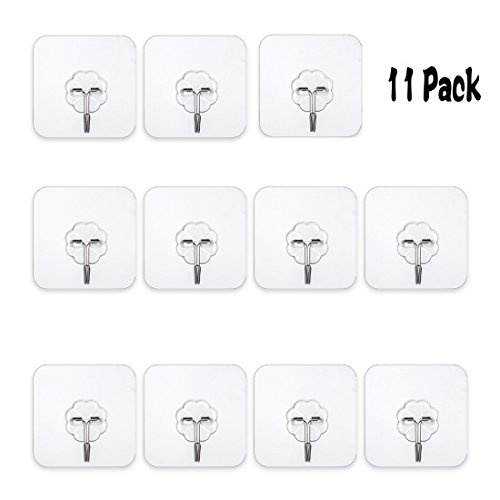 Self Adhesive Hooks -11 Pack Versatile Powerful Adhesive Wall Hooks No Damage Wall Ceiling Decoration Hanging Coats Paintings Bags for Bathroom Kitchen Living Room White (Transparent)