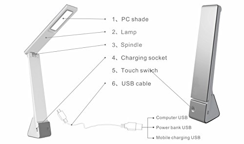-. Feature : Features a powerful 2,000mAh built-in rechargeable battery, giving you the freedom of 5-8 hours portable lighting / Protect your eye sight with this non-flickering, eye-caring LED desk lamp / 3 unique lighting mode to adapt to your needs, compliments surrounding light to create the perfect environment / Soft, uniform, and pleasant lighting, ideal for reading, writing, studying, working, etc / Concise & Modern Fashionable Appearance.Excellent desk lamp with high-grade ABS material ,180° Foldable Space Saving Design
