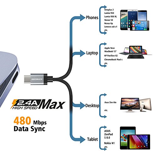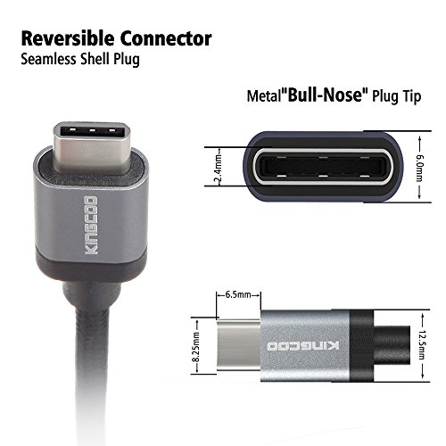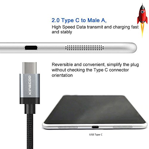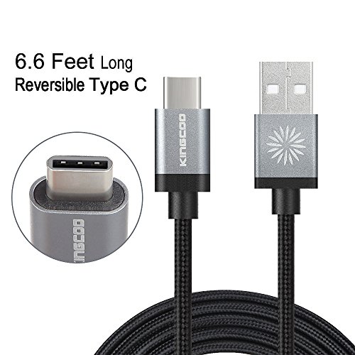 Type C, KINGCOO 6.6ft / 2M Braided USB Type C Cable With Reversible Connector for Nexus 6P, Nexus 5X, OnePlus 2, New Macbook 12 inch, Google ChromeBook Pixel, Nokia N1, Pixel C, and More - Black