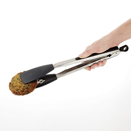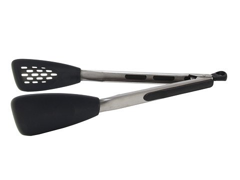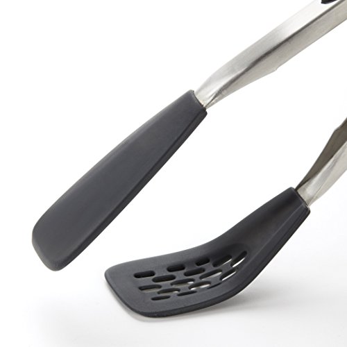 -. Binding : Kitchen -. Brand : OXO -. Color : Stainless/Black -. Department : unisex -. EAN : 0719812018362 -. Feature : Perfect for preparing delicate foods like fish, asparagus and scallops; Heat resistant to 600°F and safe for non-stick cookware / Flat head shape with thin, flexible edges easily glides beneath foods; Soft, non-slip handles and comfortable thumb rests / Straight front edge is ideal for deglazing and scraping bottom of pans; Lock closed for convenient storage / Perforated head ideal for straining juices and oils from foods; Dishwasher safe / Rounded head great for scooping and holding foods -. Label : OXO Cook's Tools -. Manufacturer : OXO Cook's Tools -. Model : 1071504 -. MPN : 1071504 -. NumberOfItems : 1 -. PackageQuantity : 1 -. PartNumber : 1071504 -. ProductGroup : Kitchen -. ProductTypeName : KITCHEN -. Publisher : OXO Cook's Tools -. Studio : OXO Cook's Tools -. Title : OXO Good Grips Silicone Flexible Tongs -. UPC : 719812018362 -. Warranty : Satisfaction Guaranteed! If for any reason you are not satisfied with an OXO product, return it for replacement or refund.