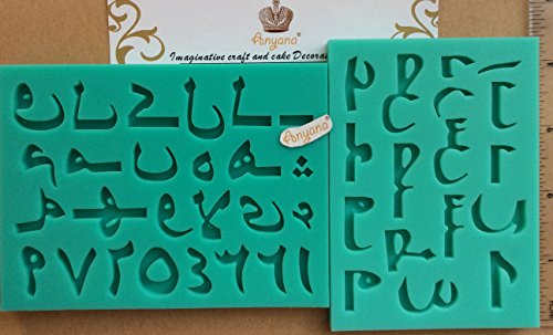 Anyana mini arabic letters alphabet number mold Fondant Mould for gum paste Sugar paste cake decorating cupcake topper decor set of 2
