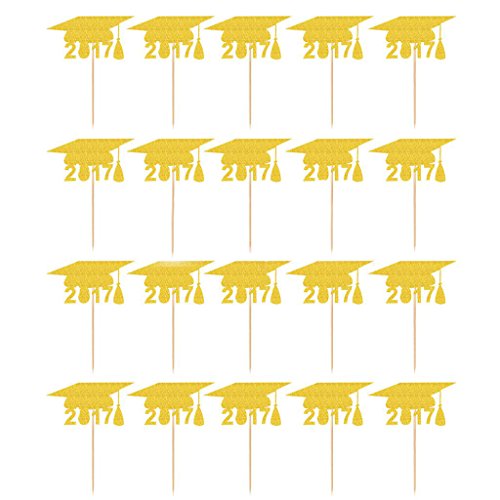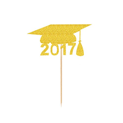 20pcs 2017 DIY Gold Graduation Cap Cupcake Toppers Cake Decoration for Graduation Party Favors