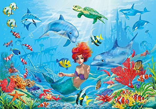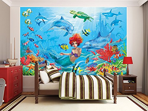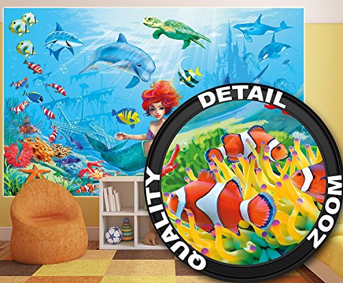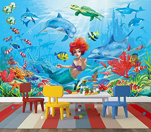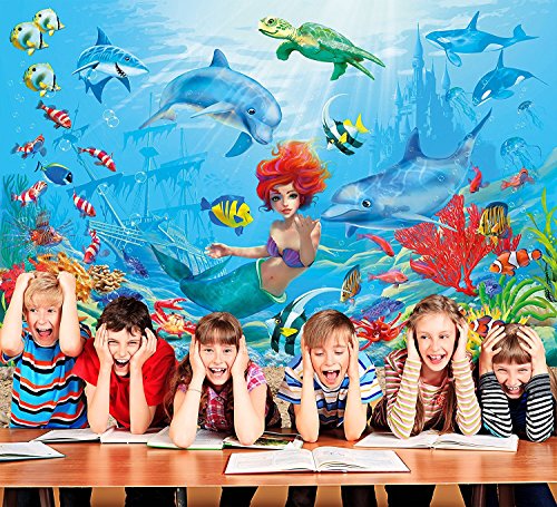 Mermaid underwater wall paper – underwater world fish dolphin mural – XXL seaworld wall decoration – girls room 82.7 Inch x 55 Inch
