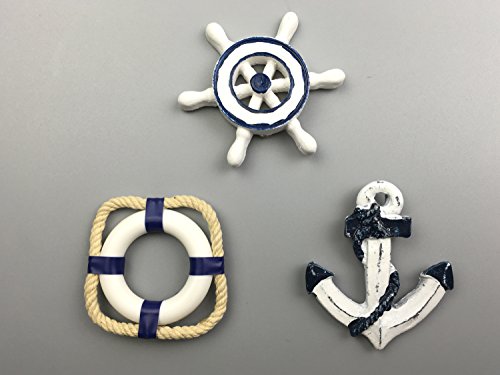 Nautical Refrigerator Magnet, Ocean Home Decor of Sailing Boat, Helm, Life Ring, Anchor Decor, Nautical Gifts for Men, Set of 4
