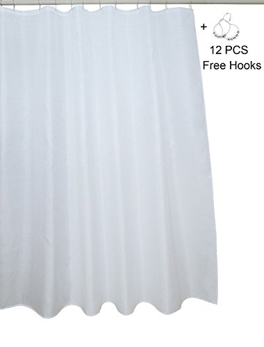 Water Repellent Fabric Shower Curtain with Hooks, Mildew Resistant, 72 x 72 - Inch, White.- by Vileafy