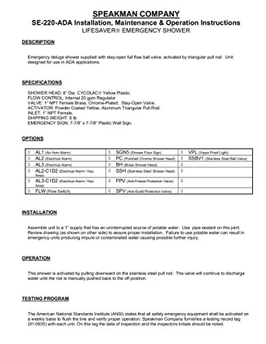 Speakman Lifesaver SE-220-ADA Wheelchair Accessible Vertical Emergency Shower