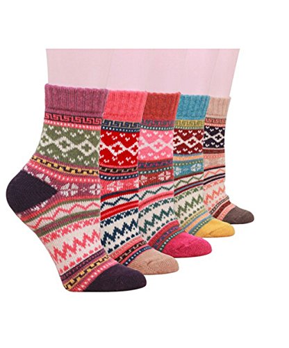-. Feature : Material:wool,designed:knited,comfortable and breathable,warm,lightweight and hight elastic,best socks for winter.Cute standard socks that will make your feet pop! / Packing Contents:5 pairs mix color socks(gray,beige,deep blue,deep green,red),three model choice for you:Stripe,Wave,Dot. / Size:Regular fits shoe size 6.5-9.0(US);38-40(EU);4-8(UK),please check the size if suit you before you place the order. / Craft:comfort and soft,high elastic materials,colorful,make the socks fashion and cute,tight rib top not easy to slip down when walking / Wicks away moisture to keep you cool and dry,extra-durable,long-lasting heel and toe areas,deodorant.