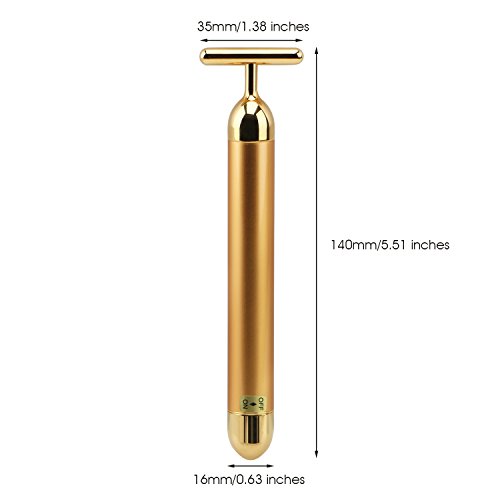 A T-shaped facial tool that is plated in 24k gold & emits 6000 micro-vibrations per minute, which greatly enhances blood circulation and healing properties onto skin disorders.