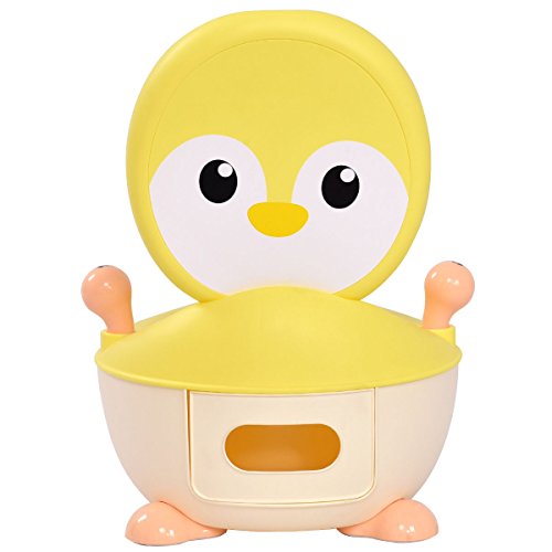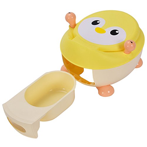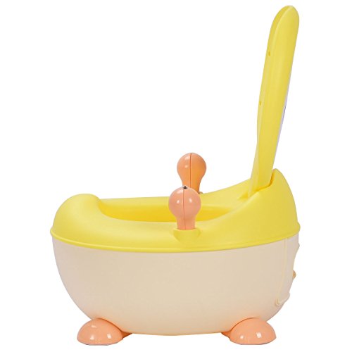 Description: Cute baby potty makes the potty training process easy for moms, and fun for kids! Bored and tired of dull old style potty? We break the traditional style and offer you a bright fresh funky design. which is in bright vibrant colors to appeal to your children. The potty has a high back to support your kid's back and an ergonomic design for comfort. We know how precious your little one is, so have taken every care to make sure the potty stays firmly. Handles on the potty ring help toddlers feel secure. There's a splash guard for boys, and the bowl removes for easy cleaning. Specifications: Color: Yellow Material: PP Product Dimensions: 14"L ×13"W × 9"H Net Weight: 3 lbs Urine capacity: 1.9 L 0 |