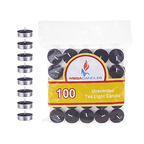 Mega Candles - Unscented Tea Light Candles - Black, Set of 100 CGA083-BK