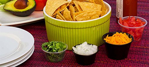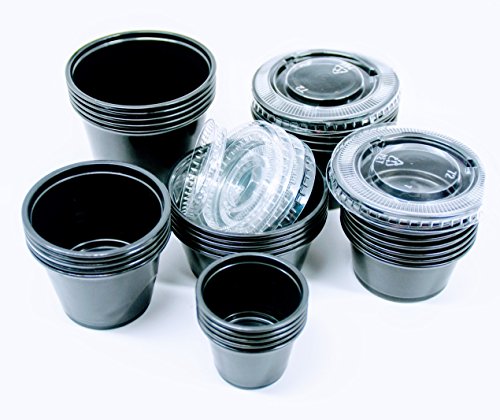Product Description Portion cup (PP) black - 1oz. Disposable for added convenience. Great for condiments, sauces, and sides. Perfect for restaurants, buffets, and catered events. 0