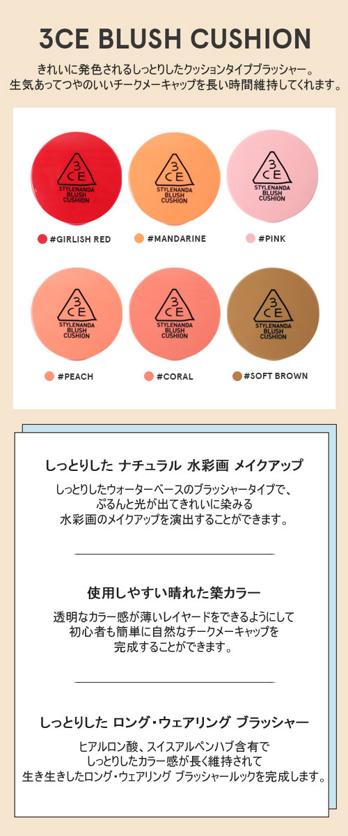 【South Korea direct delivery】 Korean cosmetics <3CE> BLUSH CUSHION (all 6 colors)