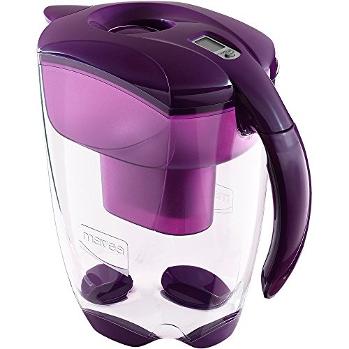 -. Binding : Kitchen -. Brand : Mavea -. Color : Purple -. EAN : 0628204137980 -. Feature : Each component of the pitcher is made of sturdy plastic that easily detach and attach for washing, and the rubber feet are great for helping to keep the pitcher in place while it is being filled in the sink / The water that comes from this pitcher is much better-tasting and has absolutely no taste, which makes it incredibly refreshing to drink / Filling the pitcher is just a matter of putting it underneath the faucet and filling until the bobber closes itself. It's rather ingenious and you don't ever have to touch it with your hands or open any lids / The soft handle is comfortable to hold while the feet prevent scratching or sweating on furniture or countertops / Product Dimensions: 10.5 x 5 x 10 inches ; 2 pounds -. IsAutographed : 0 -. Label : Mavea -. Manufacturer : Mavea -. ProductGroup : Home -. ProductTypeName : HOME -. Publisher : Mavea -. Size : 10.5 x 5 x 10 inches -. Studio : Mavea -. Title : Premium Purple Finish 9 Cup Water Filter Pitcher with Steel Mesh Brewing Basket -. UPC : 628204137980