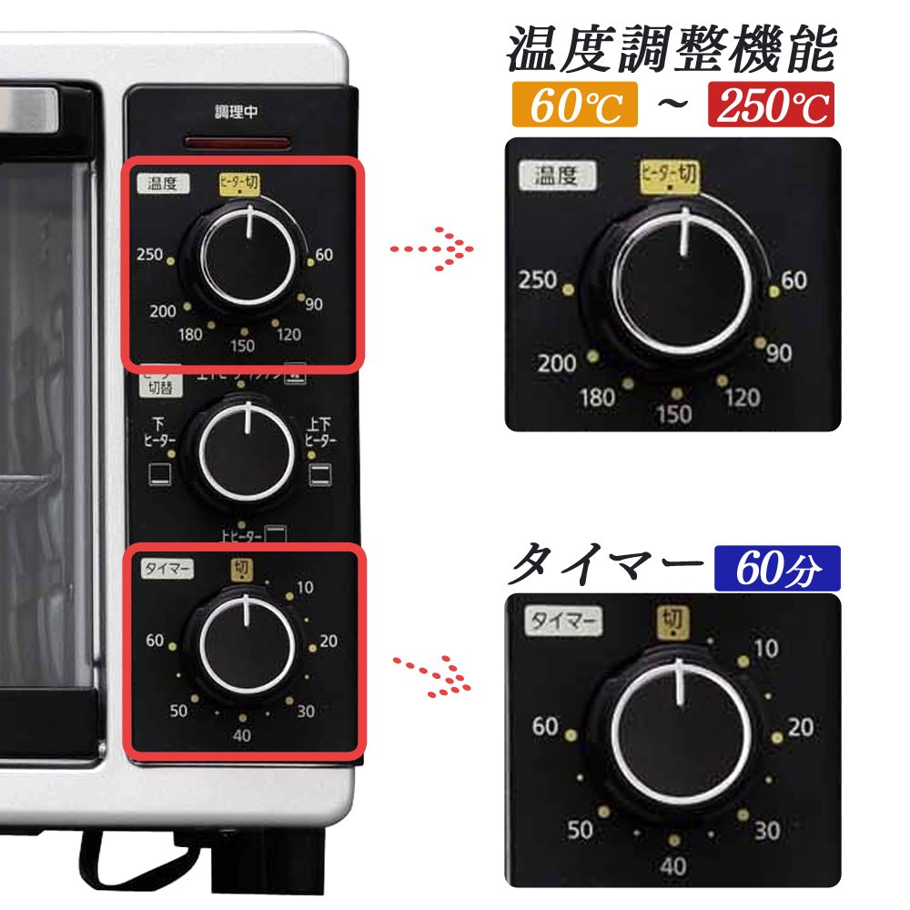 Switching between upper and lower heaters - Corresponding to various cooking such as oven cooking and grill cooking with wide temperature setting, it can also be used as a toaster for everyday use.