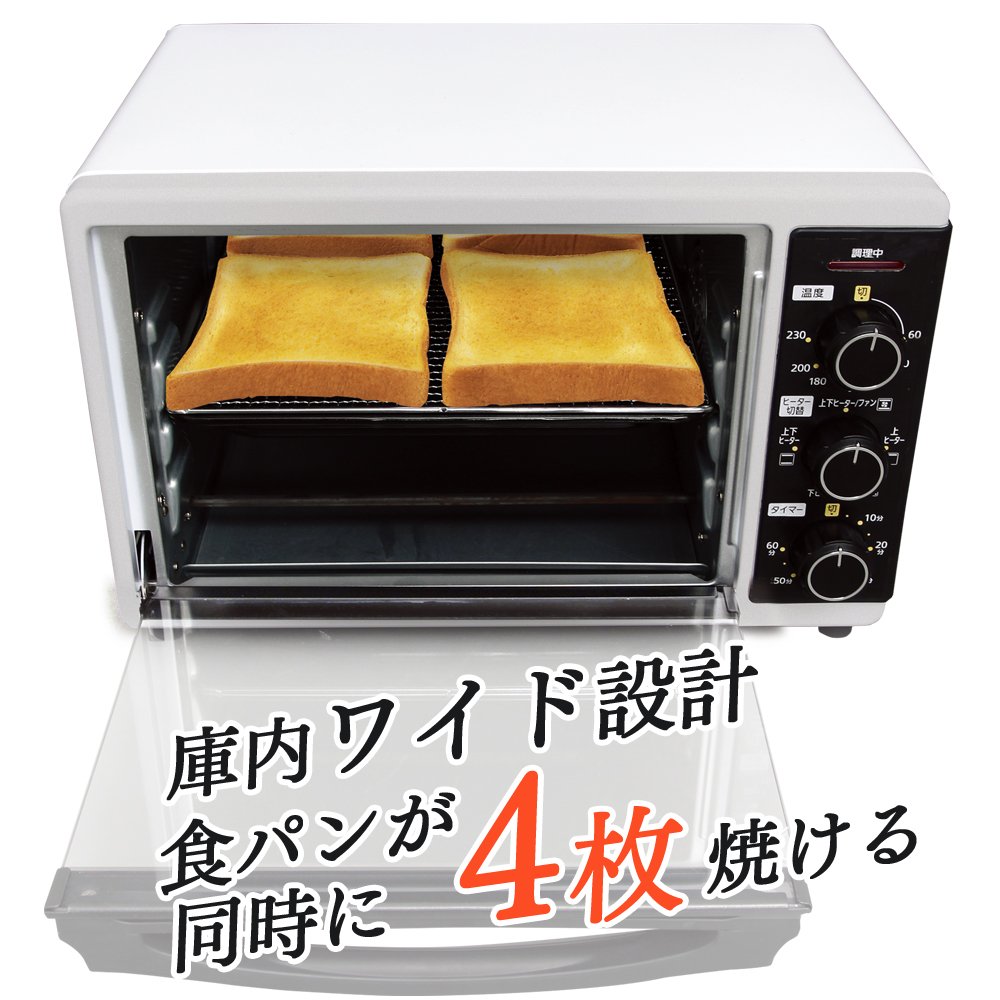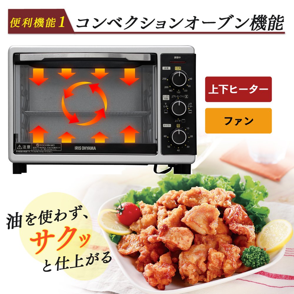 In addition to the direct fire of the upper and lower heaters, it heats so as to warm the food by convectioning the heat with the fan.