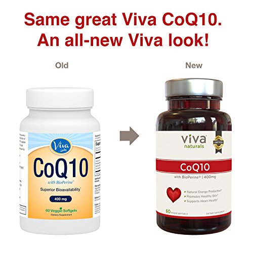 Viva Naturals CoQ10 400mg, 60 Vegetarian Softgels - Enhanced with BioPerine® for Increased Absorption