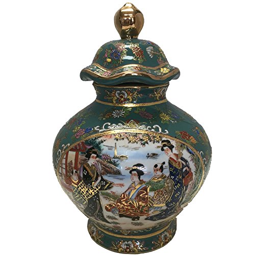 PMJC Hand Painted Porcelain Jar, 4" by 5.5" by 7.5"