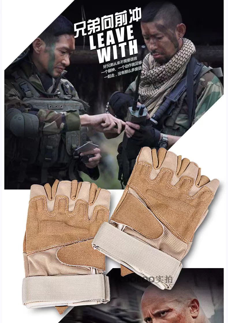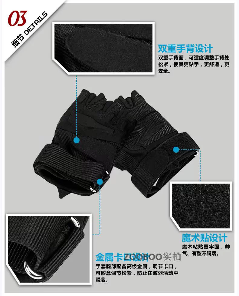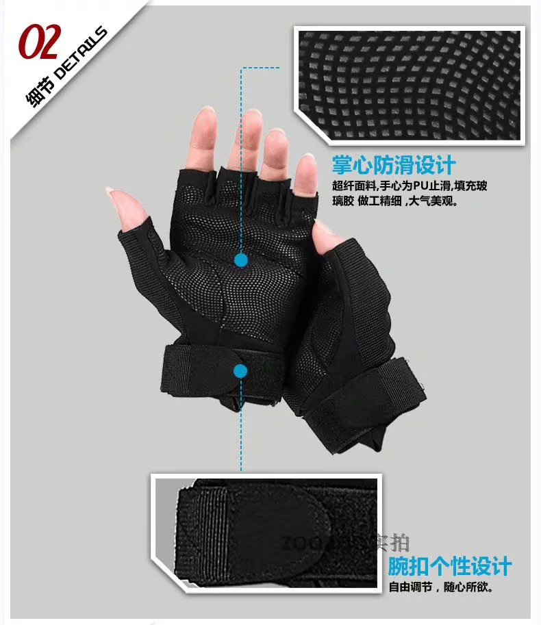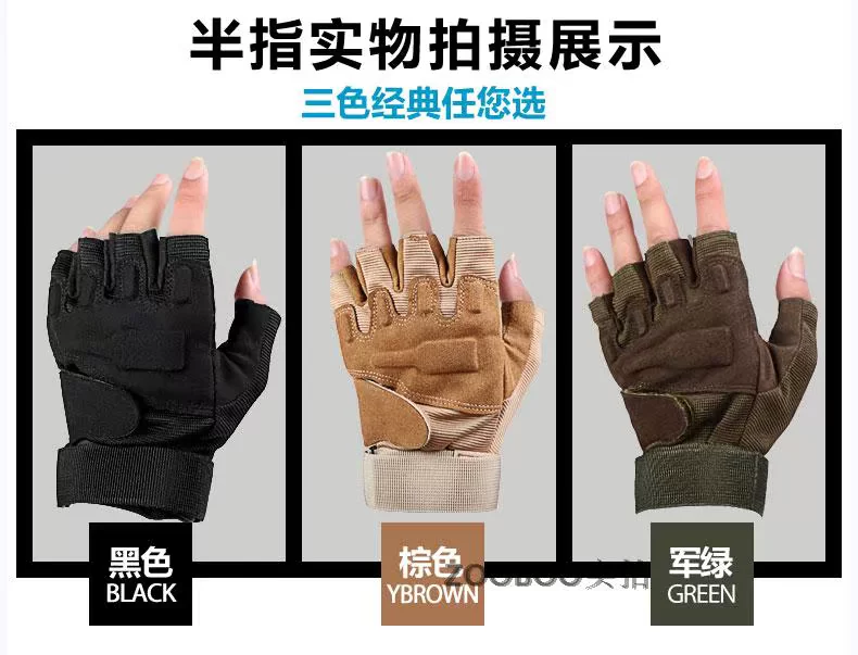 ?逐波 户外运动战术健身手套 黑鹰半指手套骑行手套防滑耐磨防割