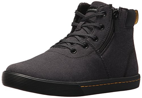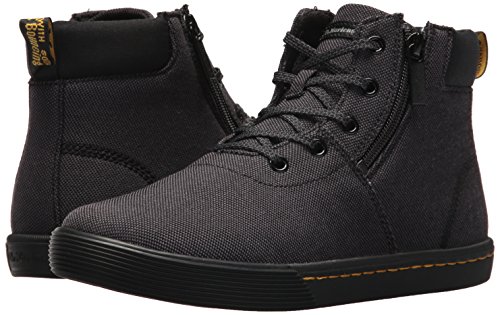 -. Feature : Made with a cemented rubber sole construction / Contains a comfortable SoftWair memory foam insole / 5-eye boot / Retains classic Doc's DNA, like grooved sides, yellow stitching and yellow heel loop / Made with Woven, a woven polyester and cotton textile, and T Lamper, a PU-coated smooth grain leather with a matte finish