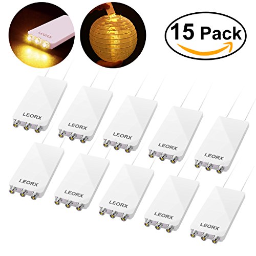 LEORX 15 Pack Party Lights with 3 LEDs for Paper Lanterns Balloons Floral Party Decoration and Outdoors Hanging ,Waterproof,Warm White