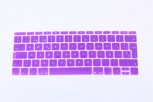 HRH Spanish Keyboard Cover Silicone Skin for New Macbook 12 Inch A1534 with Retina Display (2015 NEWEST VERSION) European/ISO Keyboard Layout (Purple)