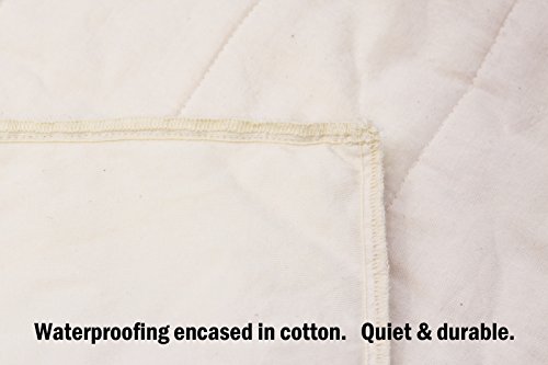 LAY YOUR BABY TO SLEEP ON OUR DOWNY SOFT MATTRESS PAD QUILTED WITH PURE COTTON WOOL! It's delectable. No other mattress pad has cotton filled quilting, if you read carefully on other crib pads, somewhere you will read 'polyester fill'. Our cotton is organic cotton all the way through, we don't blend it with anything, and you can tell as soon as you touch it, it was grown this way. It's plush & luxurious. You'll feel content & happy knowing you searched & found the best protector for your baby.