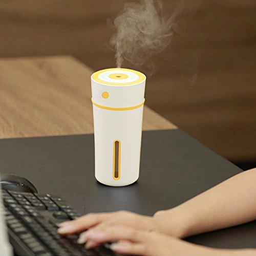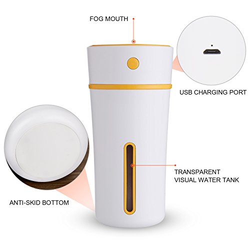 Xcellent Global Portable Humidifier Mini USB Air LED Cool Mist Humidifier 2 Modes Auto Shut-Off & Whisper Quiet for Home Bedroom Office Travel Hotel Car, 300ml