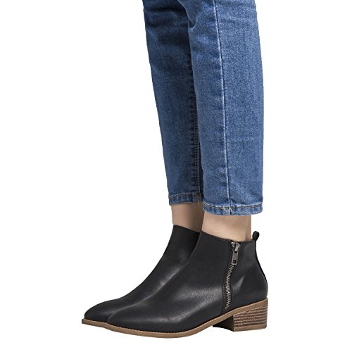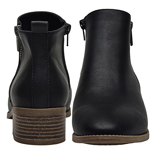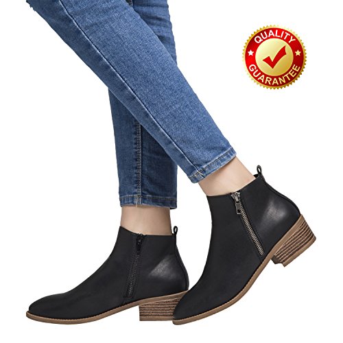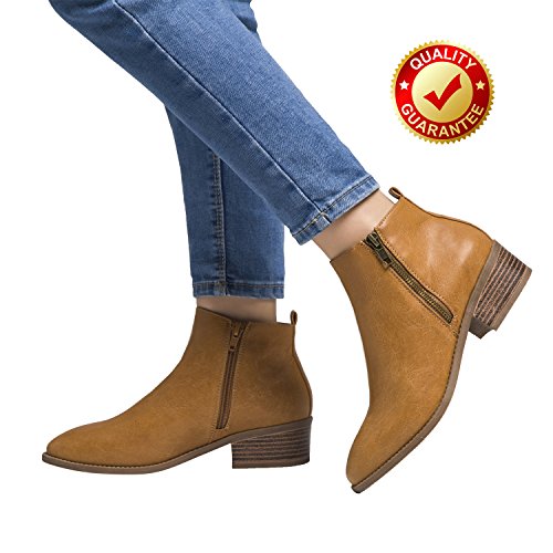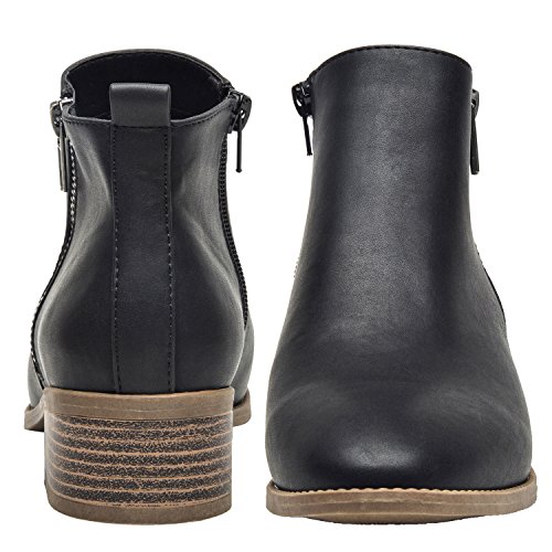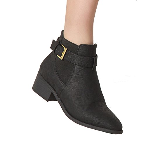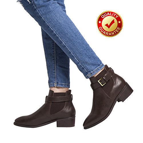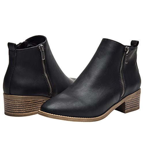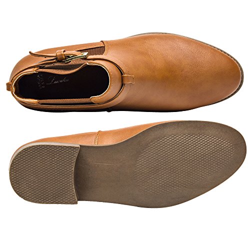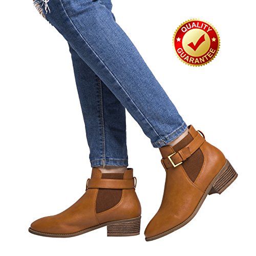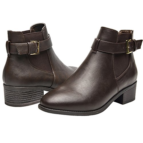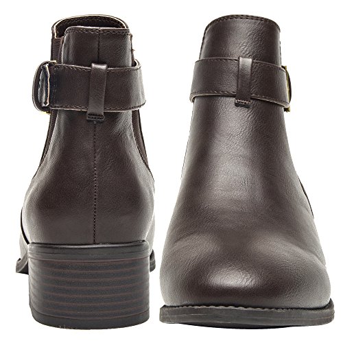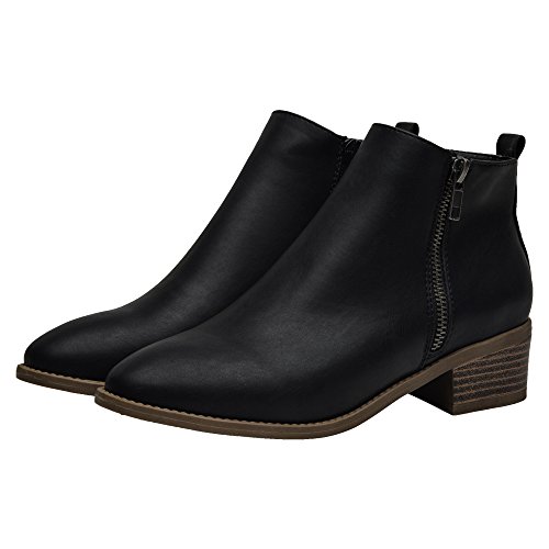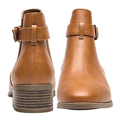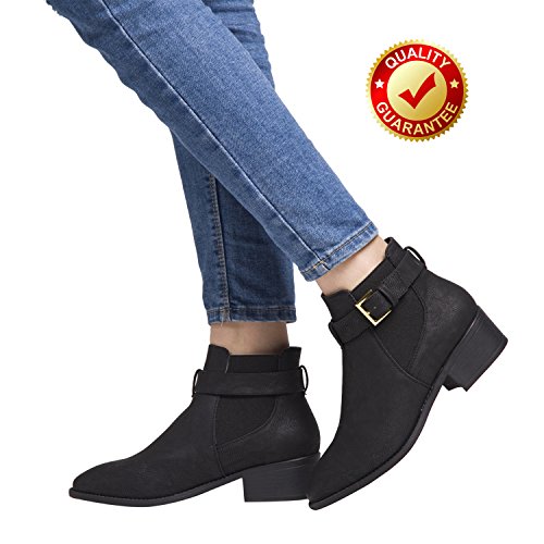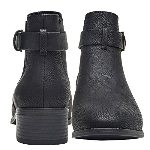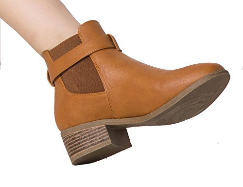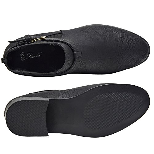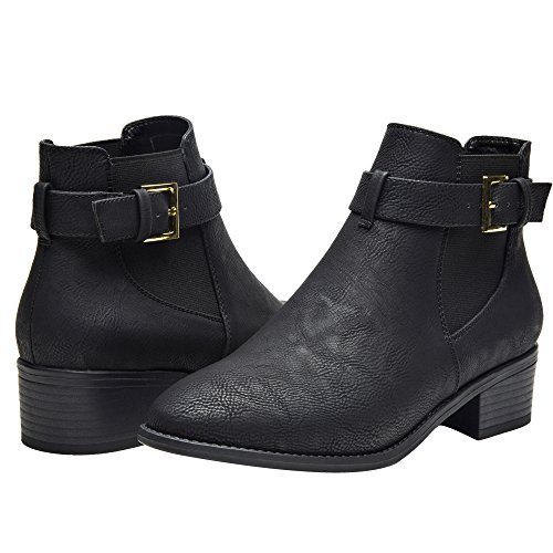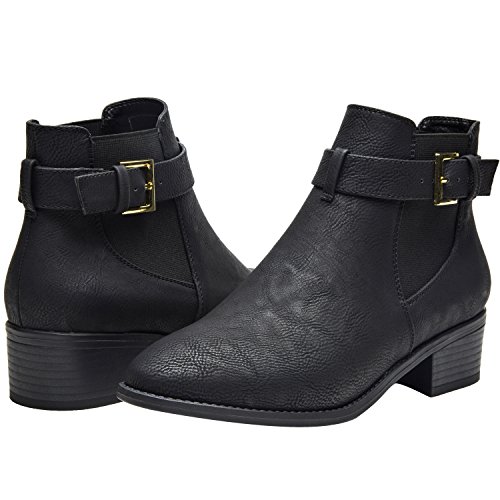 Occasion: Casual Shoe Type: Waist Zip/Elastic/Strap Buckled Ankle Boots Upper: PU-leather Inner Lining: mesh fabric foam Insole: PU-leather Memory foam Out sole: Rubber Heel Style :Low Block Toe Style - round-toe Heel height: 1.50", shaft height from heels: 3.25", top opening circumference: 10"