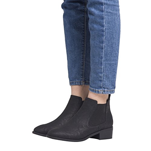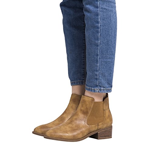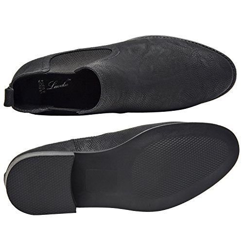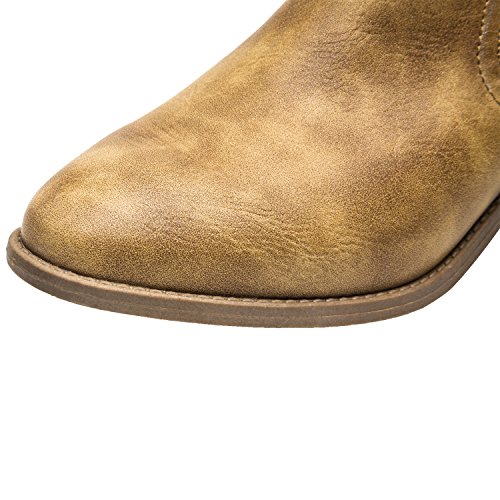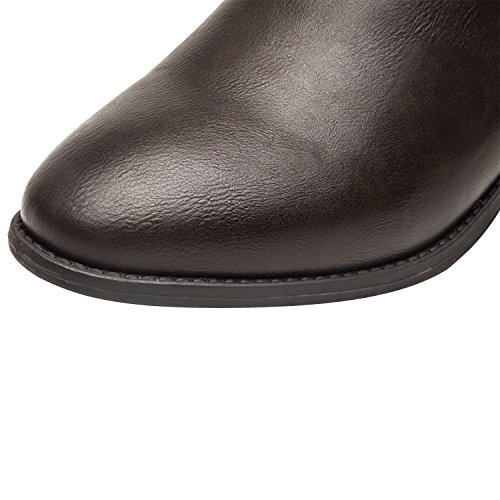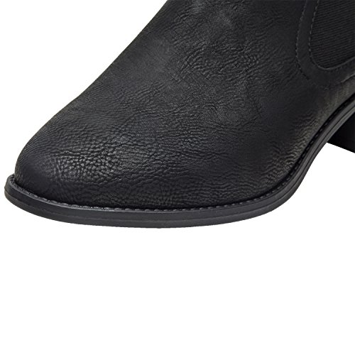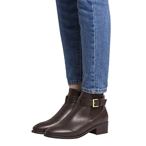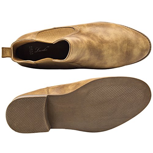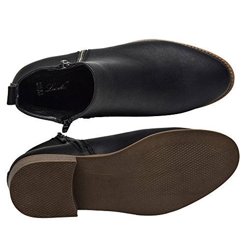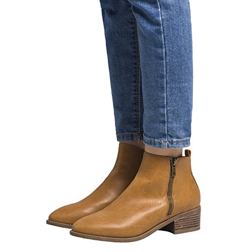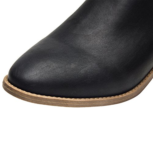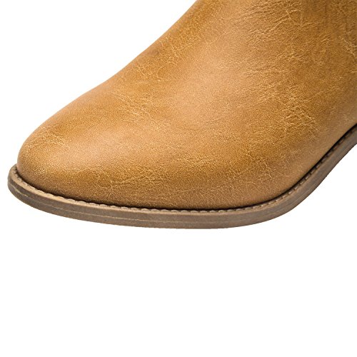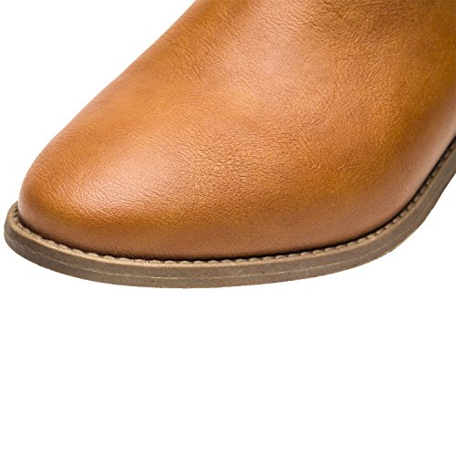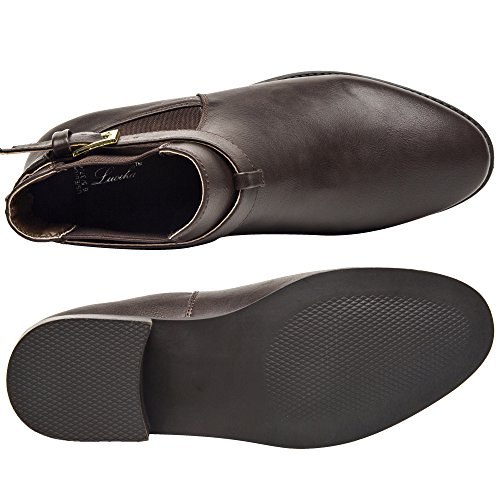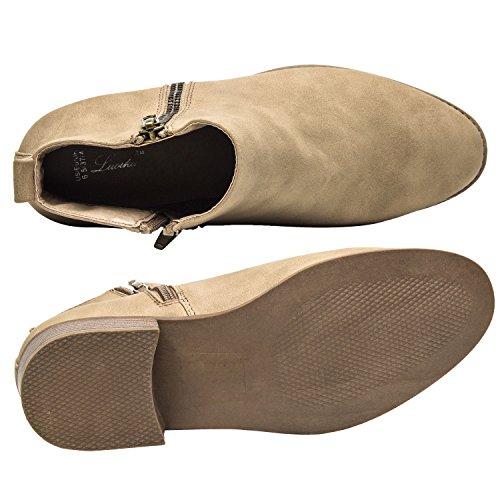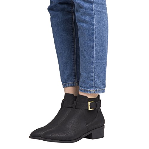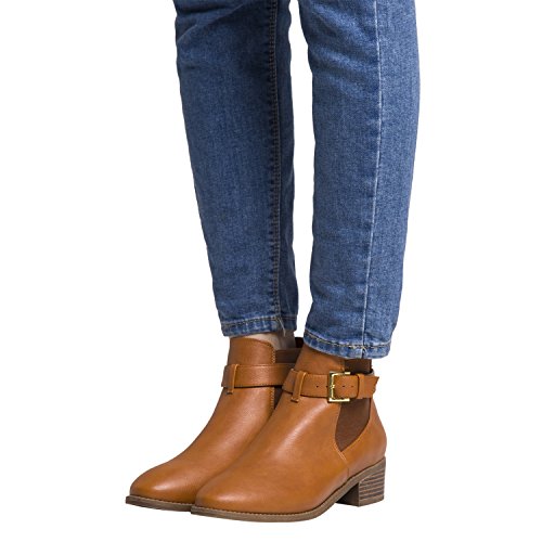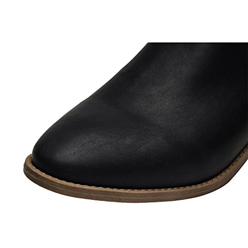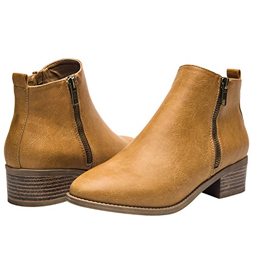 Occasion: Casual Shoe Type: Waist Zip/Elastic/Strap Buckled Ankle Boots Upper: PU-leather Inner Lining: mesh fabric foam Insole: PU-leather Memory foam Out sole: Rubber Heel Style :Low Block Toe Style - round-toe Heel height: 1.50", shaft height from heels: 3.25", top opening circumference: 10"