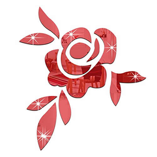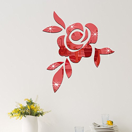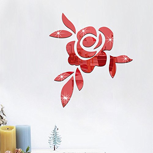 Cideros Decorative 3D Mural Decals Living Room Bedroom Home Decor Decorations DIY Romantic Roses Flowers Art Crystal Reflective DIY Mirror Effect 3D Wall Stickers B Type - Red