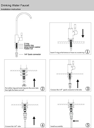 BOEN SS105 Lead-Free Water Purifier Faucet SUS 304 Stainless Steel Drinking Water Faucet for Kitchen Filter Filtration System with 1/4-Inch Tubing Quick Connector, Brushed Finish